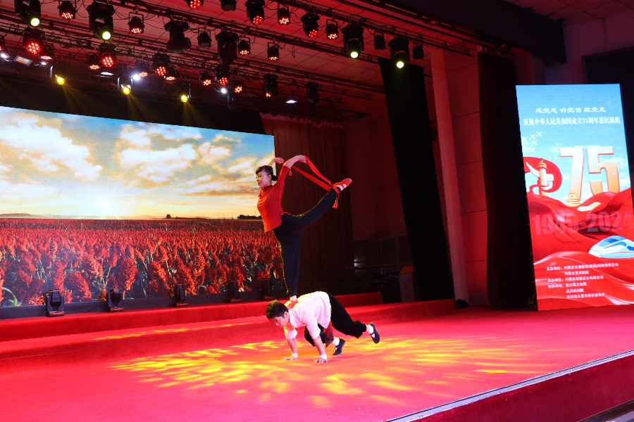 為慶祝祖國75周年華誕,弘揚(yáng)愛國主義精神,營造歡樂祥和的節(jié)日氛圍,謳歌新時(shí)代,唱響主旋律,扎實(shí)推動“感黨恩、聽黨話、跟黨走”群眾教育實(shí)踐活動走深走實(shí),有形有感有效鑄牢中華民族共同體意識,9月27日,在國慶節(jié)即將來臨之際,由內(nèi)蒙古交通投資集團(tuán)、內(nèi)蒙古藝術(shù)劇院共同舉辦的“感黨恩、聽黨話、跟黨走”慶祝中華人民共和國成立75周年惠民演出在武川縣青山影視演藝廣場精彩開演,與武川縣當(dāng)?shù)厝罕姎g聚一堂,共慶佳節(jié)。