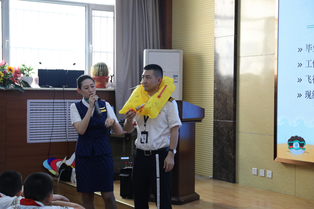 60分鐘的航空知識講座,由天驕航空夏冰機長為同學(xué)們深入淺出的講解了航空歷史、飛機構(gòu)造、飛行原理等,空勤人員詳細(xì)介紹了自己的職業(yè)特點并為學(xué)生們展示了氧氣面罩、救生衣、安全帶的正確使用方法。講座寓教于樂、深入淺出、啟發(fā)互動,內(nèi)容精彩紛呈,孩子們也踴躍發(fā)言,主動學(xué)習(xí)航空知識。每一名參加活動的天驕人用愛與責(zé)任帶動現(xiàn)場的孩子們,在感受航空飛行魅力的同時,努力激發(fā)孩子們崇尚科學(xué)、翱翔藍(lán)天的熱情與向往,幫助孩子們從小樹立報效祖國、建設(shè)家鄉(xiāng)的“航空夢”“大飛機夢”和“中國夢”。