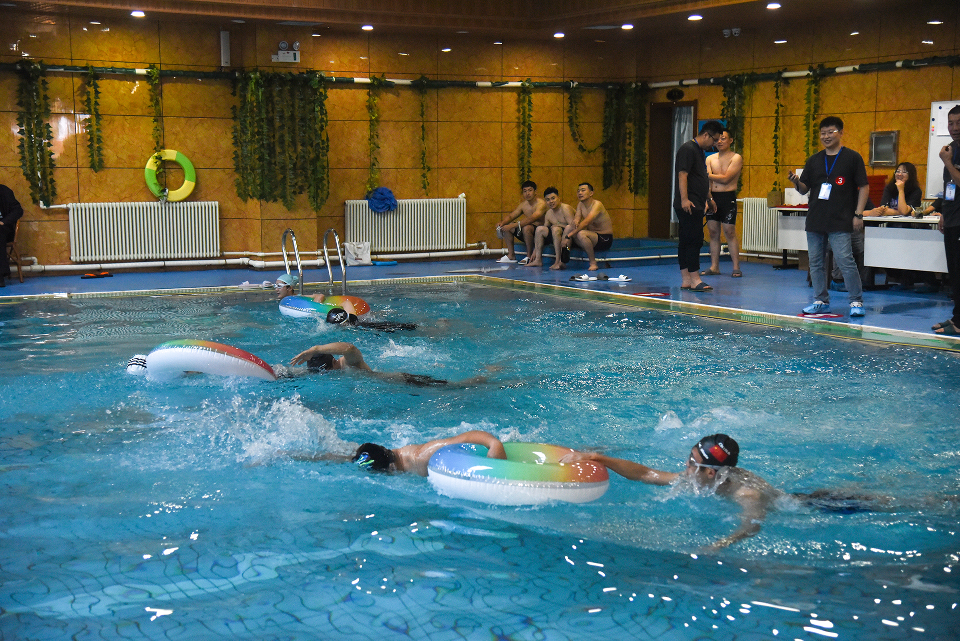 比賽設(shè)置了50米蛙泳、50米自由泳、100米自由泳姿、200米(4x50米)混合泳接力以及“水中尋寶”游戲等項目。參賽選手團結(jié)協(xié)作、奮力拼搏,經(jīng)過2個多小時的精彩紛呈的水上角逐大戰(zhàn),陳成、扎拉嘎呼、樂瑋、趙洪明、江格爾、劉佳、劉競禹等分別奪得冠軍。