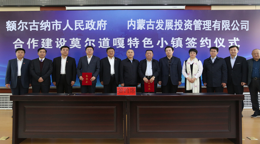 內(nèi)蒙古發(fā)展投資管理有限公司與額爾古納市人民政府簽署《合作投資建設(shè)額爾古納市莫爾道嘎小鎮(zhèn)合作框架》。