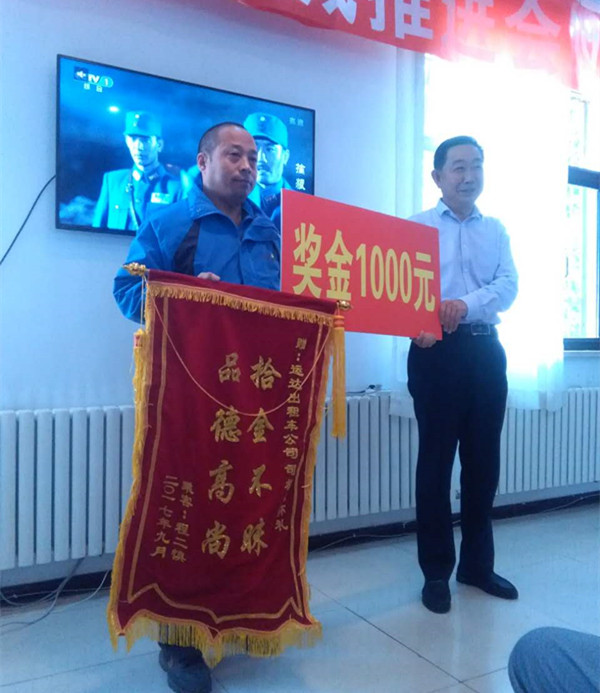 王懷禮同志拾金不昧的高尚品格,為運達公司所有員工及駕駛員樹立了好榜樣,提升了公司在行業(yè)乃至全社會的美譽度,并把公司“兩學(xué)一做”學(xué)習(xí)教育常態(tài)化制度化和向“共產(chǎn)黨員示范崗”學(xué)習(xí)的成果體現(xiàn)到了實際行動上,受到社會的好評。經(jīng)公司研究決定,給予王懷禮同志通報表揚,并予以1000元的現(xiàn)金獎勵。同時,公司號召廣大員工及駕駛員以王懷禮同志為榜樣,學(xué)習(xí)他的拾金不昧的崇高品質(zhì),并號召廣大員工及全體駕駛員要更好為乘客提供優(yōu)質(zhì)文明安全的服務(wù)。(李翠琴)