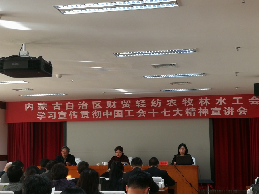 11月15日下午,自治區(qū)財貿(mào)輕紡農(nóng)牧林水工會召開學(xué)習(xí)宣傳貫徹中國工會十七大精神宣講會,內(nèi)蒙古交通投資集團(tuán)工會副主席司瑞明及所屬基層工會主席、委員共7人參加了會議。本次宣講會意在貫徹落實全國總工會關(guān)于迅速掀起學(xué)習(xí)宣傳貫徹中國工會十七大精神熱潮的要求,進(jìn)一步調(diào)動和激發(fā)廣大職工投身“建設(shè)亮麗內(nèi)蒙古