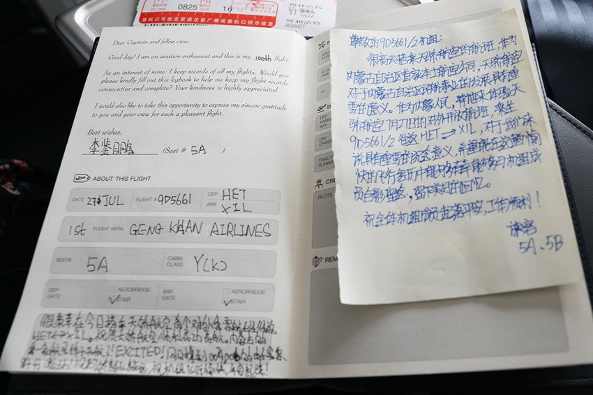 于先生與李先生是兩位飛行愛好者,特意購買了呼和浩特=錫林浩特往返程機(jī)票,體驗(yàn)航線首航飛行與服務(wù),并為機(jī)組送上了真摯的祝福。