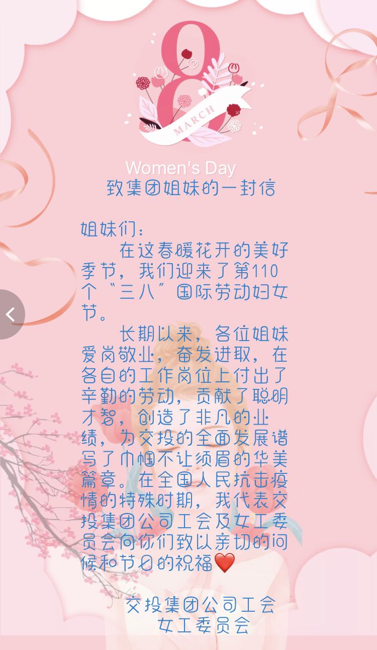 為貫徹落實自治區(qū)總工會《關于助力打贏疫情防控阻擊戰(zhàn)組織開展“三八”節(jié)活動的通知》精神,集團公司工會結合實際及時印發(fā)通知,明確要求所屬公司工會、各委員會要大力宣傳以習近平同志為核心的黨中央對婦女事業(yè)和婦女工作的高度重視和親切關懷指示;深入學習貫徹習近平總書記關于做好疫情防控工作的重要講話精神,圍繞落實服務職工辦實事計劃和女職工關愛行動組織開展今年第110個“三八”國際婦女節(jié)活動。集團公司各級工會在“三八”國際婦女節(jié)到來之際,以不同形式開展一系列豐富多彩的活動。