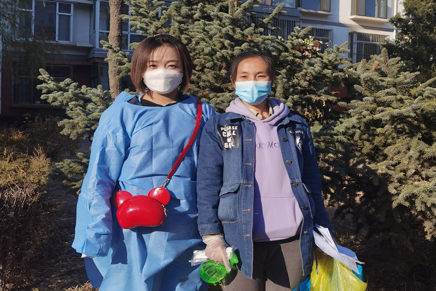 楊冬雪(左)與社區(qū)網(wǎng)格員
