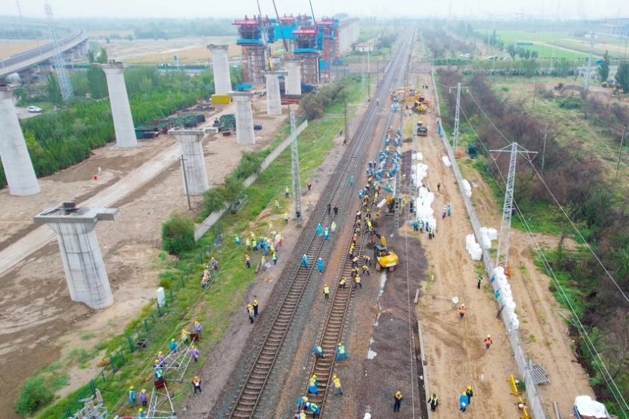 包銀高鐵烏海站包蘭鐵路雙線撥接施工完成